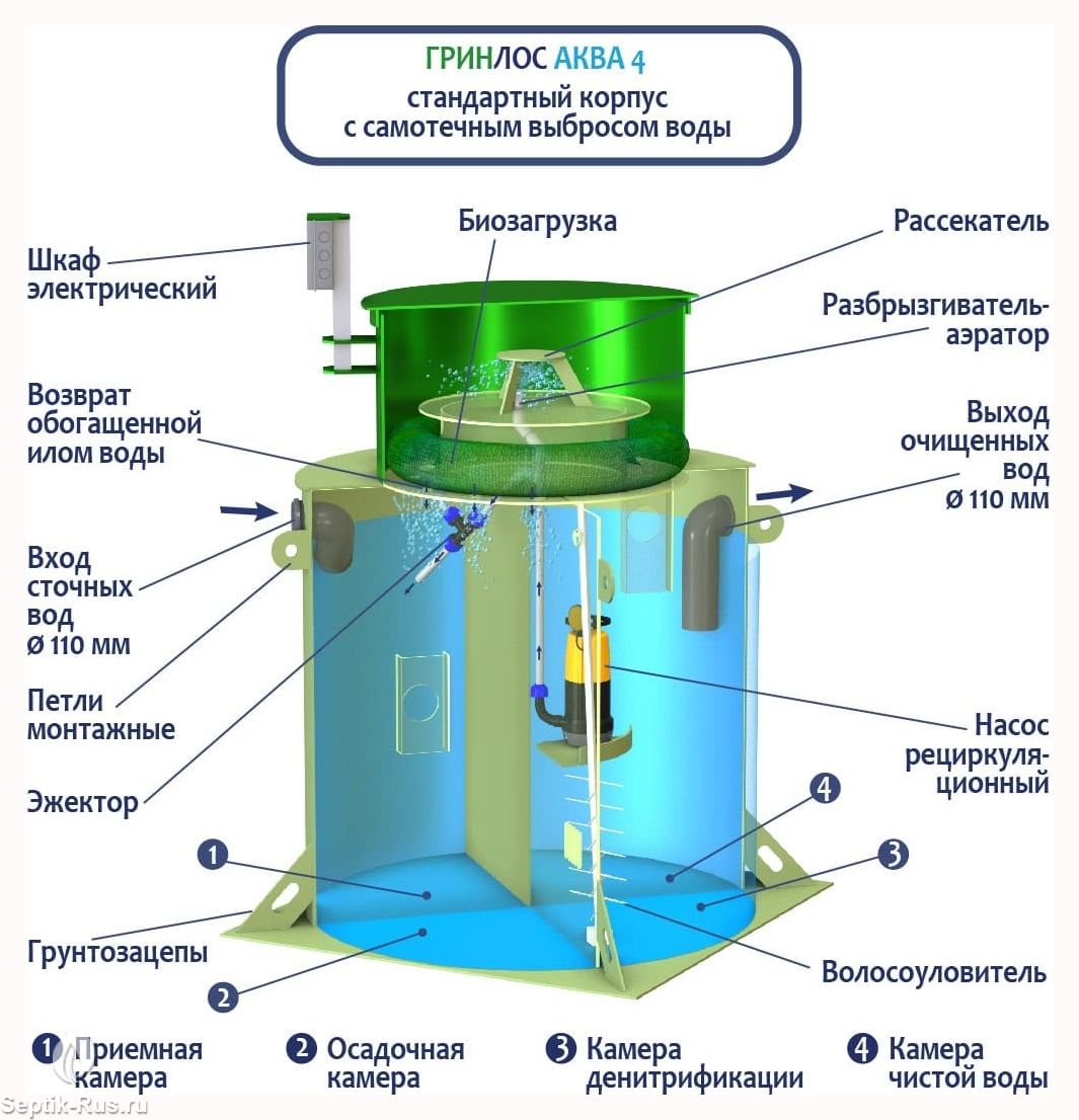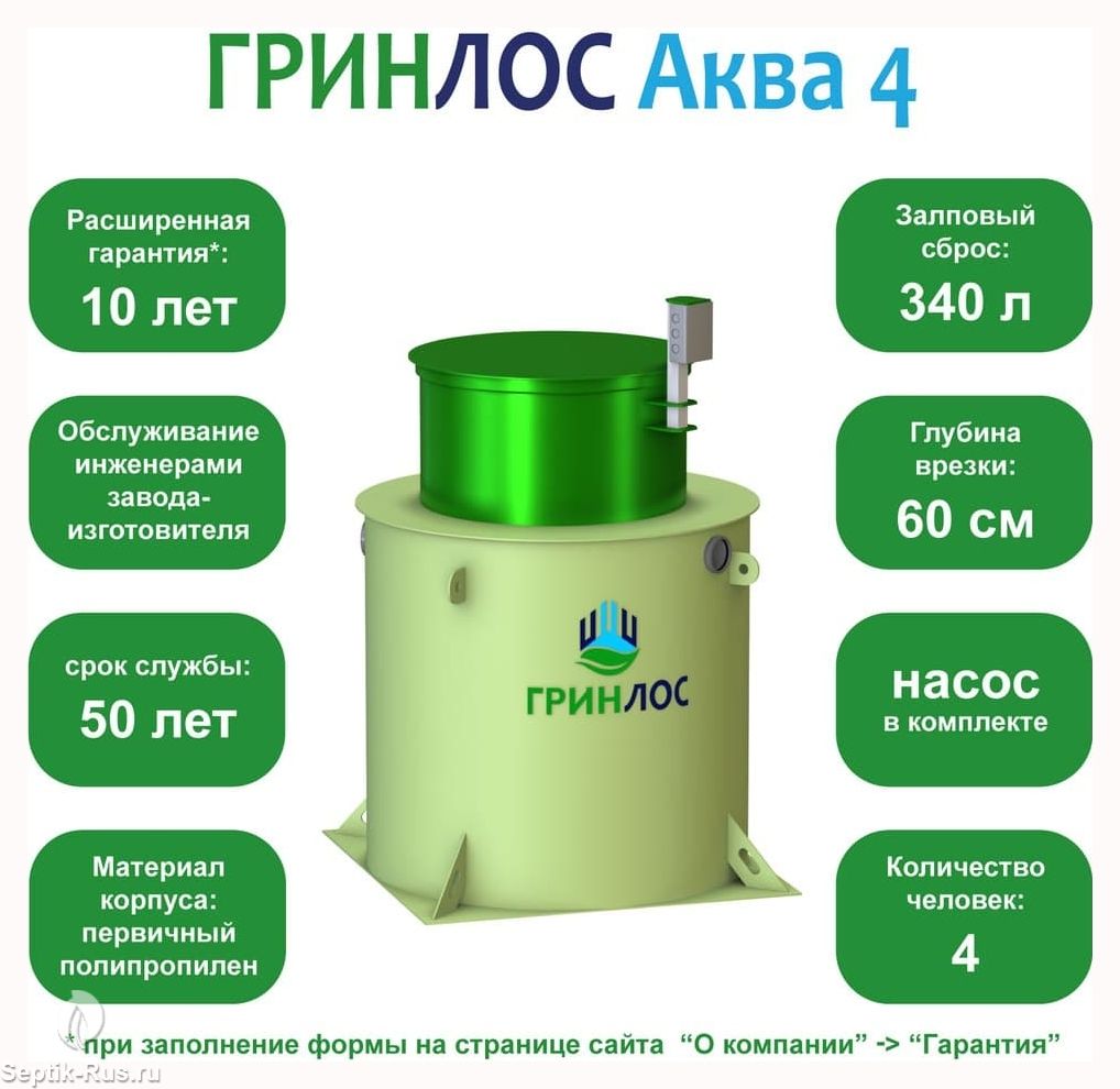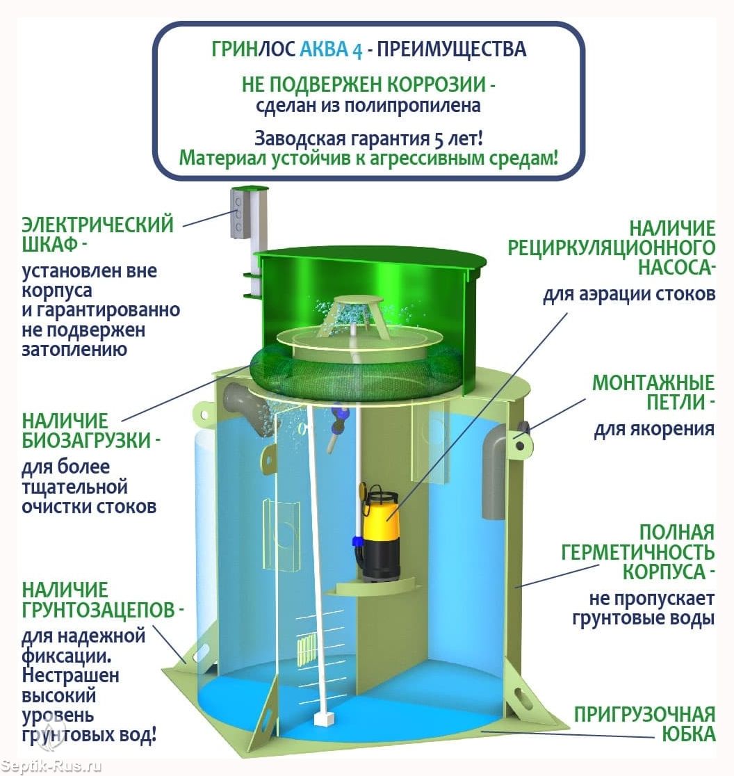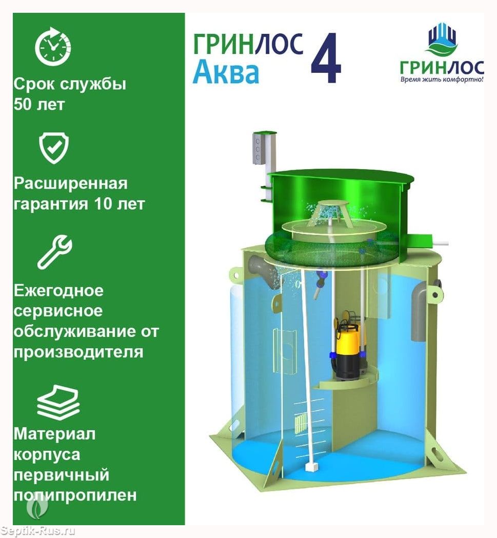 Отличительными особенностями септика ГРИНЛОС Аква 4 являются: